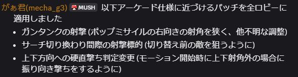 詳細を検証できていないワープバグや被撃破後の復活位置を除き、対戦に強い影響を及ぼすアーケード版からの変更点はおおよそ修正が完了。